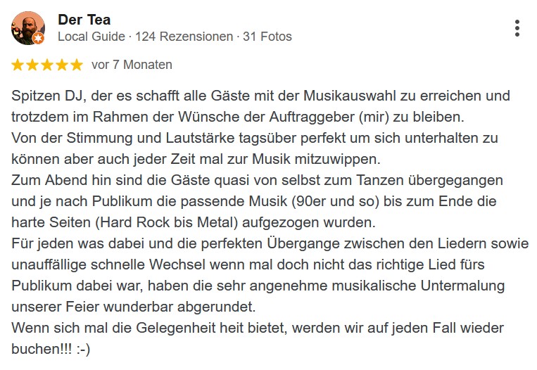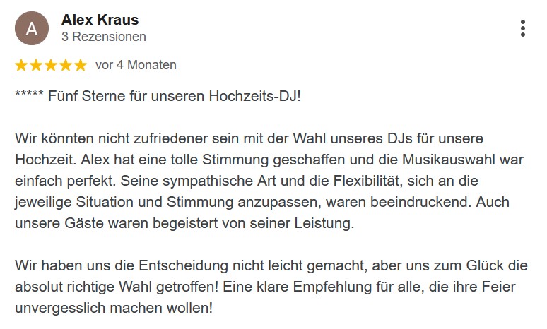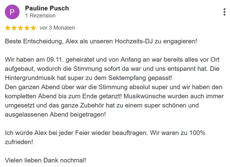 - glückliche Kunden, die mit meinem DJ-Service voll und ganz zufrieden sind